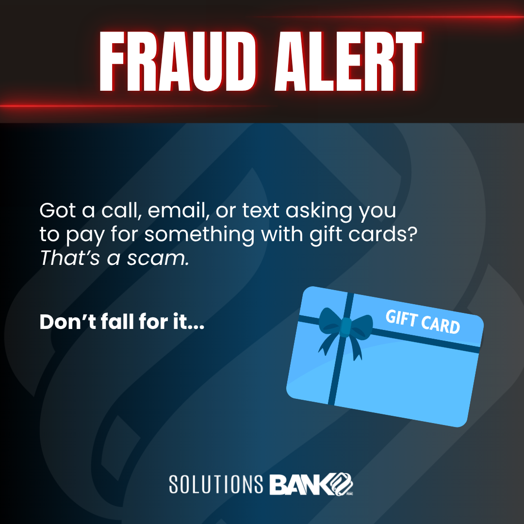 Remember: No legitimate business or bank will ever ask for gift cards as payment.