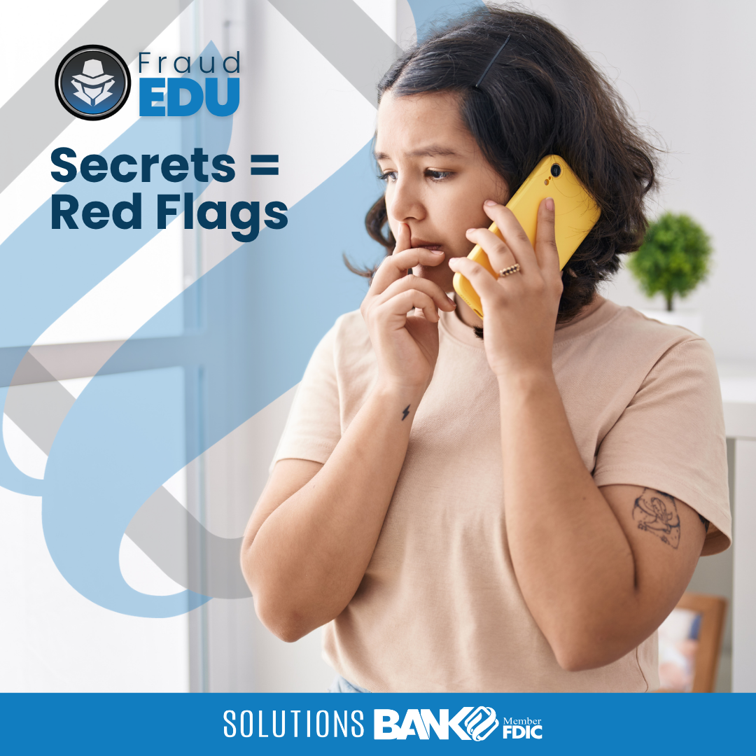 Scammers often pose as friends or family in trouble, then pressure you to stay quiet. Phrases like “Don’t tell anyone” are meant to isolate you and keep you from telling anyone what’s happening. Always verify by calling your loved one directly at a trusted number. Head to solutions.bank/security-center to learn more about common scams and how to protect yourself.