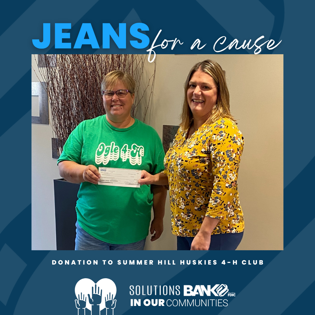 We awarded the Ogle County Summer Hill Huskies 4-H Club a check for the funds raised from our Q3 Jeans for a Cause fundraiser. The 4-H Club will use the funds for different activities and various projects within the community throughout the year.
