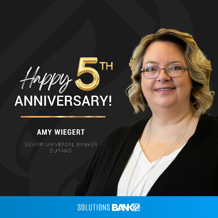 Amy celebrated her 5th anniversary at Solutions Bank on September 9th!