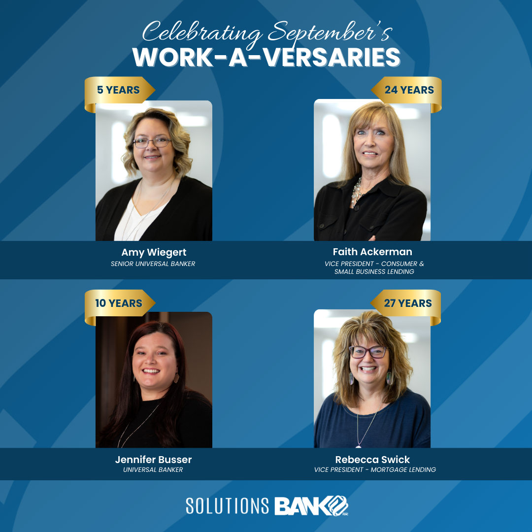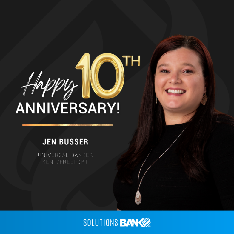 Jen will be celebrating her 10th anniversary at Solutions Bank on September 21st!